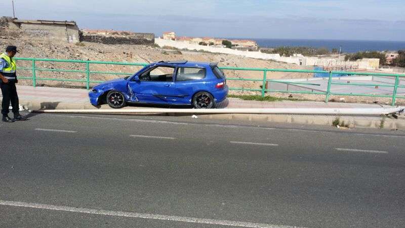 Según los testimonios recogidos por un colaborador de TELDEACTUALIDAD en el punto de accidente, ocurrido en la carretera costera a la altura de la Estación Depuradora de Hoya del Pozo en dirección Norte, el suceso tuvo lugar al filo de las 17.20 horas y se desconoce si el coche siniestrado es robado porque sus ocupantes se marcharon antes de que llegaran los agentes de la Policía Local, que ha abierto una investigación esclarecer lo sucedido.