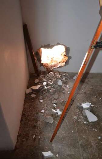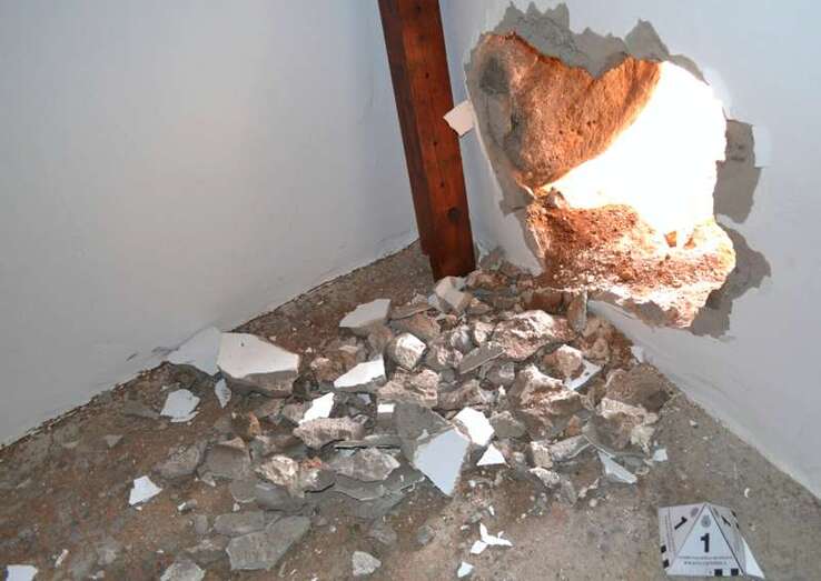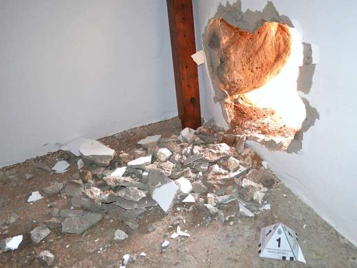Boquete realizado por los ladrones en la ermita (Foto TA) Boquete realizado por los ladrones en la ermita (Foto TA)