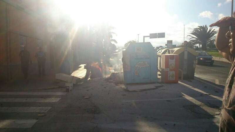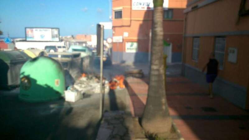 Por causas que por el momento se desconocen, el fuego se desató a media tarde de este lunes en uno de los contenedores de basura que se encuentran situados en esta zona, el cual a los pocos minutos quedó calcinado por las llamas, y también afectó a otros recipientes cercanos.