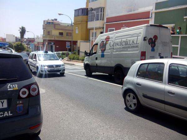 Telde.- Una persona he resultado herida leve en una colisión frontal donde se han visto tres vehículos implicados. Ha sido trasladada a la Clínica San Roque aquejada de cervicalgia. El suceso tuvo lugar sobre las 12.00 horas de este martes en la calle José Barrera Segura, la vía principal del barrio de El Calero.
