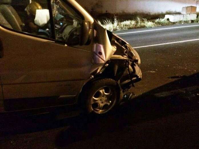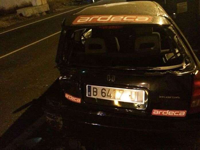 El accidente ocurrió hace unos minutos y, según testigos presenciales, el furgón circulaba en dirección hacia el casco urbano de Telde cuando por circunstancias desconocidas por ahora se desvió hace la derecha e impacto fuertemente contra un turismo marca Honda Civic, de color negro, que estaba estacionado en el margen derecho de la vía, ocasionándole daños importantes.