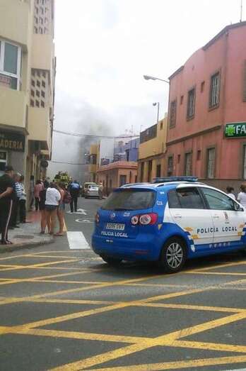 La calle de Tenerife, la que entra hacia el barrio, a la altura de la farmacia y del establecimiento de Spar ubicados en la carretera general de Melenara, permaneció durante algo más de una hora cerrada al tráfico por la Policía Local para facilitar así el despliegue y la actuación de los bomberos que finalizó al filo de las 16.30 horas de esta tarde.