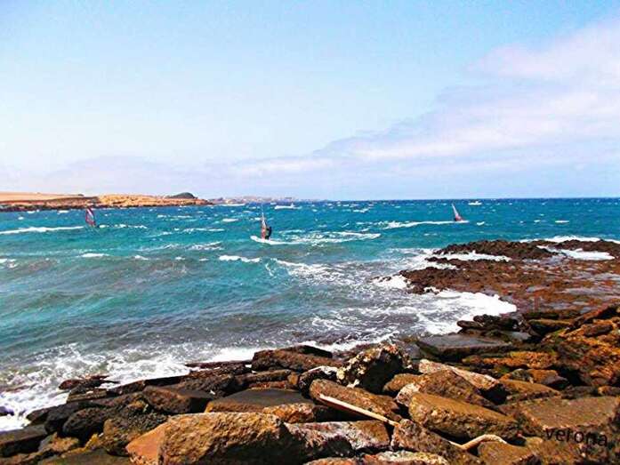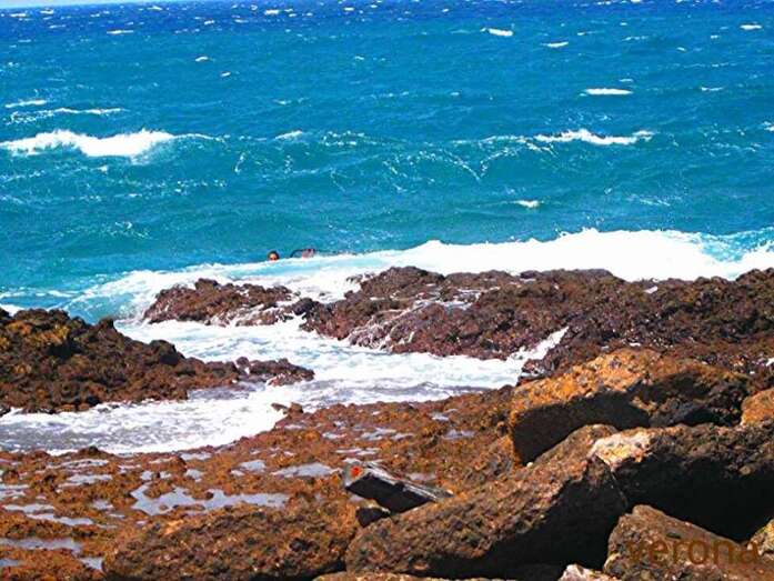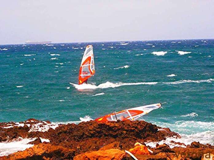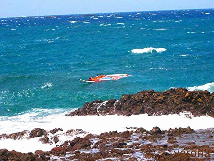 Telde.- Una joven surfera pasó apuros este domingo en la playa de Ojos de Garza al caerse de la tabla cerca de los riscos de la Península de Gando, situados al sur de esta cala teldense. TA ofrece imágenes del suceso.
