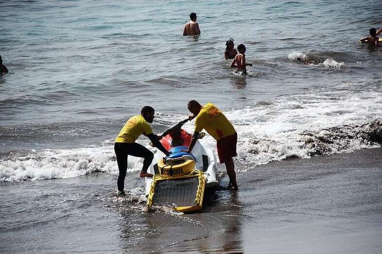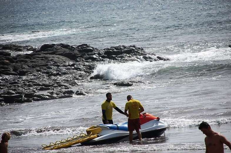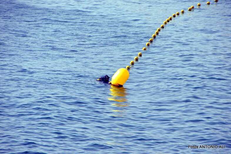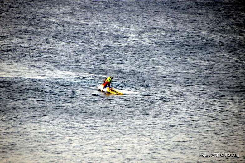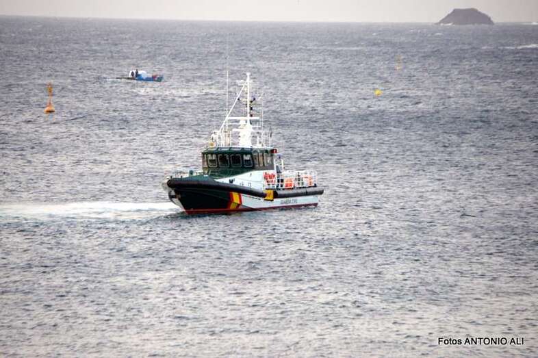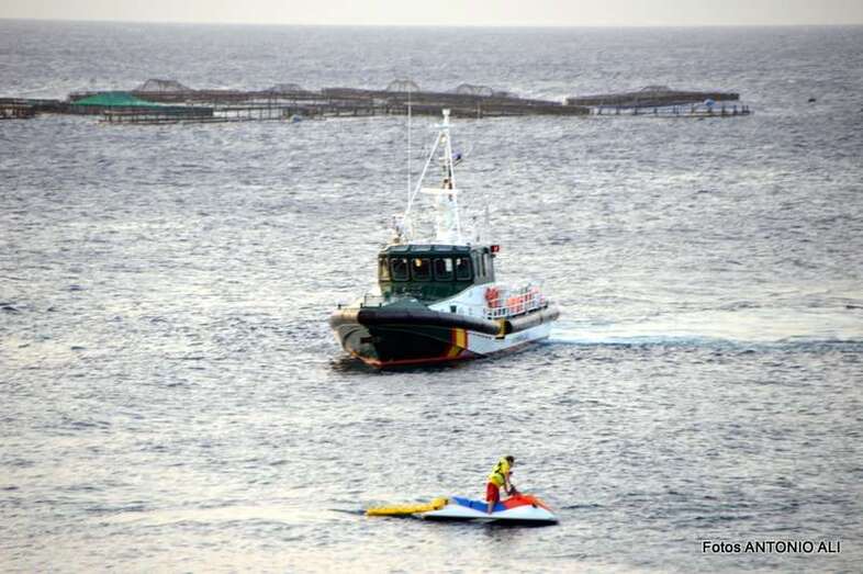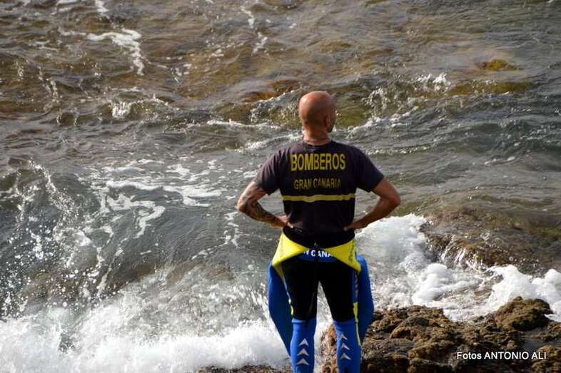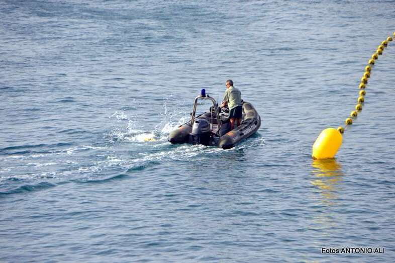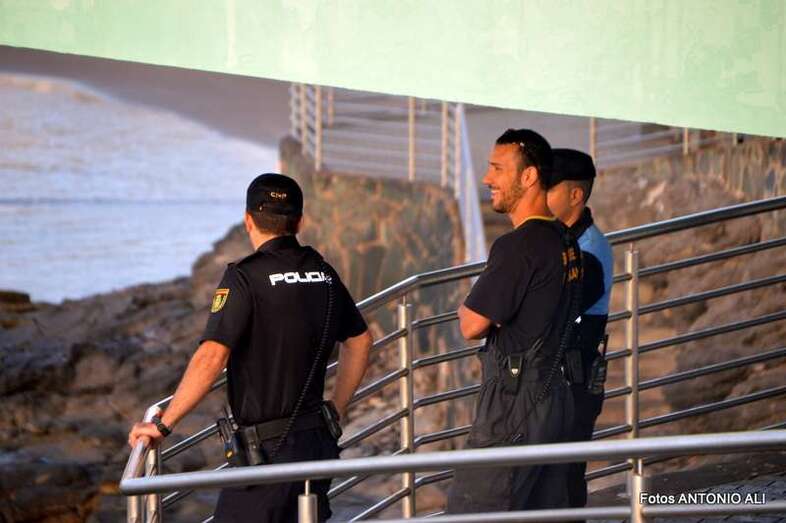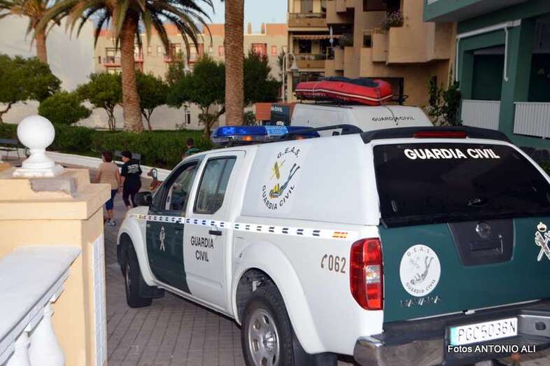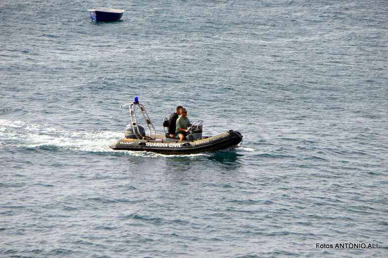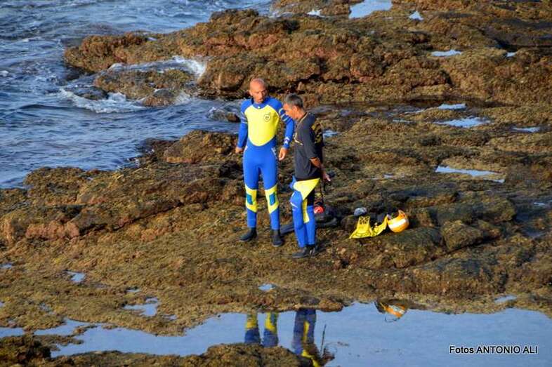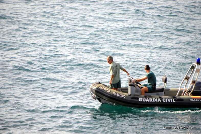 Un buzo del Grupo Especial de Actividades Subacuáticas de la Guardia Civil, regresa a la arena de Salinetas tras finalizar una inmersión (Foto Antonio Alí)