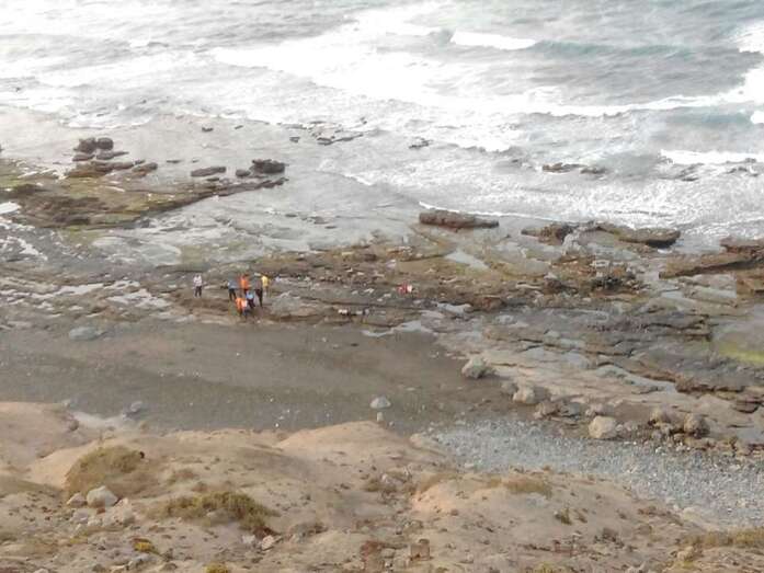Hasta la costa norte de Jinámar se han desplazado varias dotaciones de la Policía Local de Telde y del Cuerpo Nacional de Policía, incluido agentes de la Unidad Científica, así como un helicóptero del Grupo de Emergencias y Salvamento (GES) del Gobierno de Canarias y una embarcación de Salvamento Marítimo. Además de personal de Protección Civil Telde, dos socorristas de Proactiva -empresa que se encarga del servicio de vigilancia en las playas del municipio teldense, y bomberos del parque zonal de La Garita y de la capital grancanaria.