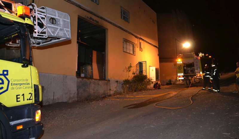 Telde.- Los bomberos del Consorcio de Emergencias han sofocado un incendio desatado esta tarde-noche en una nave de la calle Plácido Fleitas, en la parte alta de la zona industrial de Maipez, en Jinámar. Dos dotaciones del parque zonal de Telde, más una tercera llegada desde la base de Arinaga, participaron en el operativo, al que también se sumaron efectivos de la Policía Local de Telde, CNP y Protección Civil. En total, fueron necesarios mil doscientos litros de aguas para extinguir el fuego.