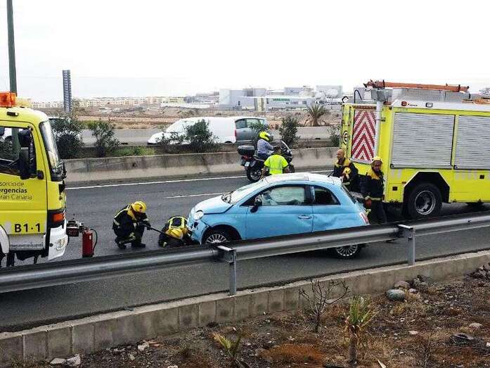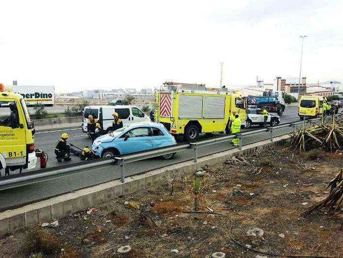 Telde.- Un turismo sufrió hace unos minutos un aparatoso vuelco en la GC-1, en sentido Sur, a la altura de Las Huesas. TA avanza imágenes.