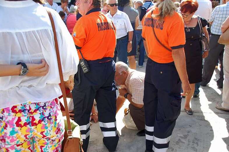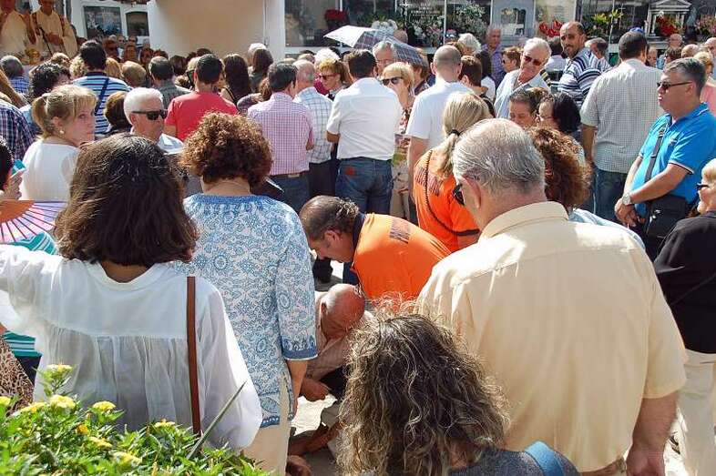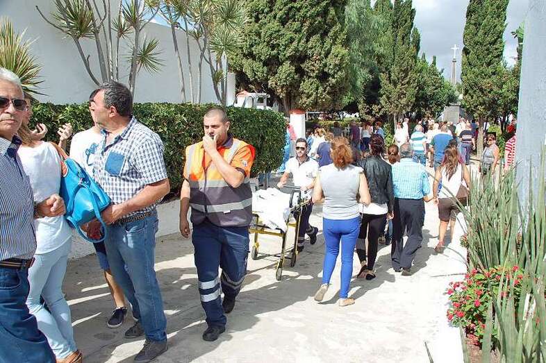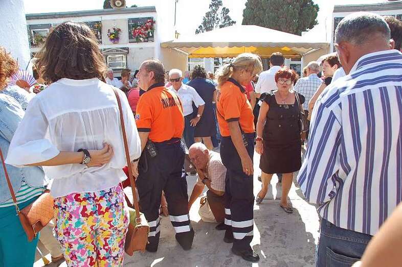 El síncope le sobrevino mientras escuchaba la misa oficiada en el camposanto sanjuanero por los sacerdotes José María Cabrera y Eugenio Peñate. La mujer, quizás debido al calor y al bochorno reinante, se desmayó y fue atendida en primera instancia por  familiares y voluntarios de Protección Civil de Telde, que formaron un cordón de protección en torno la desvanecida.