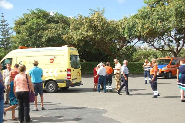 Efectivos de una ambulancia de soporte vital básico del Servicio de Urgencias Canario llegaron media hora después de que la mujer sufriera el vahído. Tras una primera valoración por el personal sanitario, fue trasladada rápidamente en una camilla hasta la unidad móvil aparcada delante de la fachada principal de la necrópolis de San Juan. Finalmente sería evacuada a un centro hospitalario.