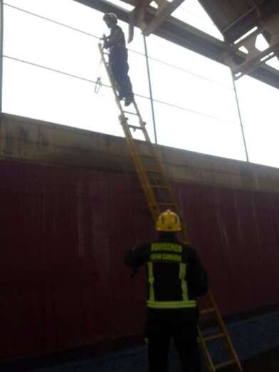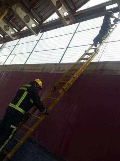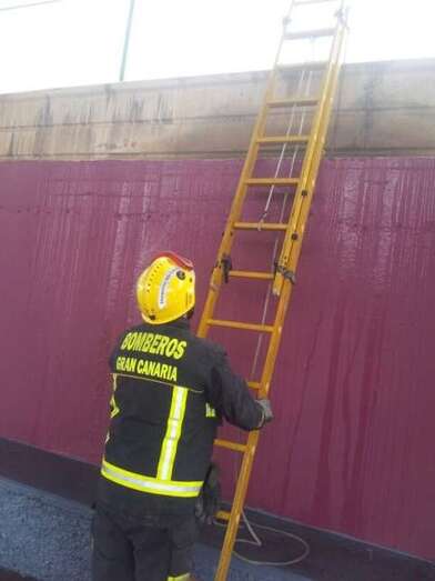 La alerta tuvo lugar pasadas las 12.00 horas de este viernes cuento agentes de la Policía Local avisaron al 1-1-2 del Gobierno de Canaria, que activó a los bomberos de Telde. Gracias a la ayuda de una escalera extensible accedieron a una altura de 5 metros y cortaron la plancha.