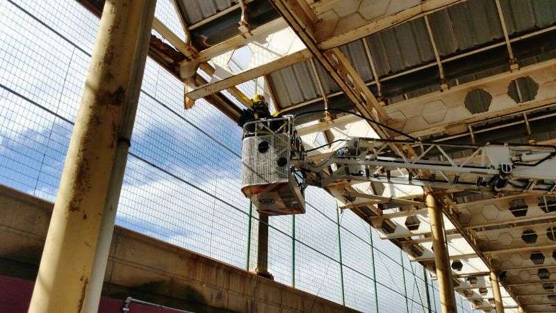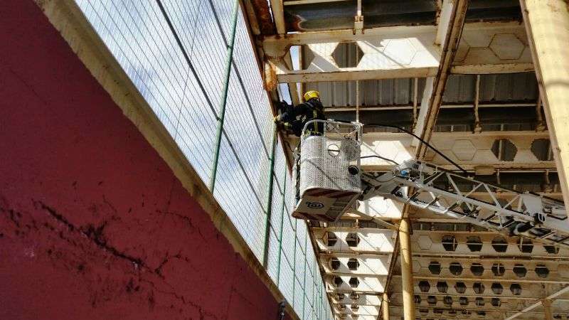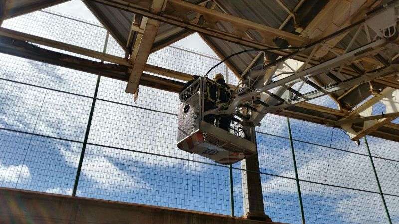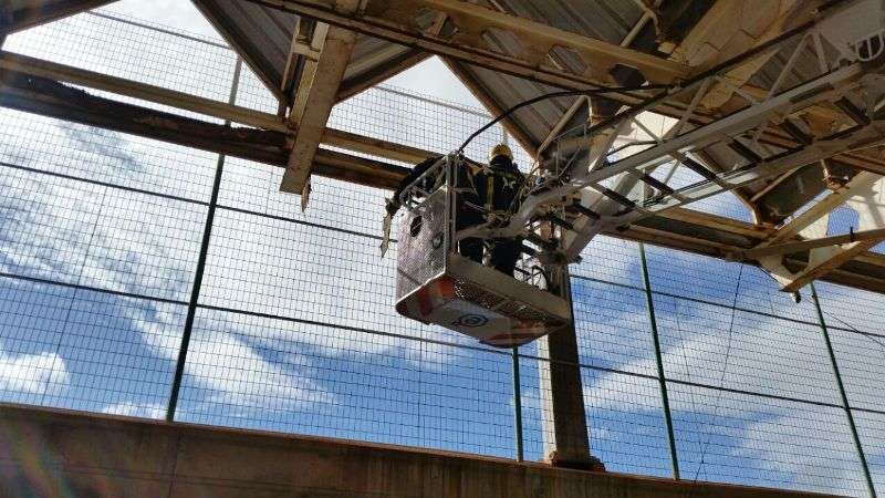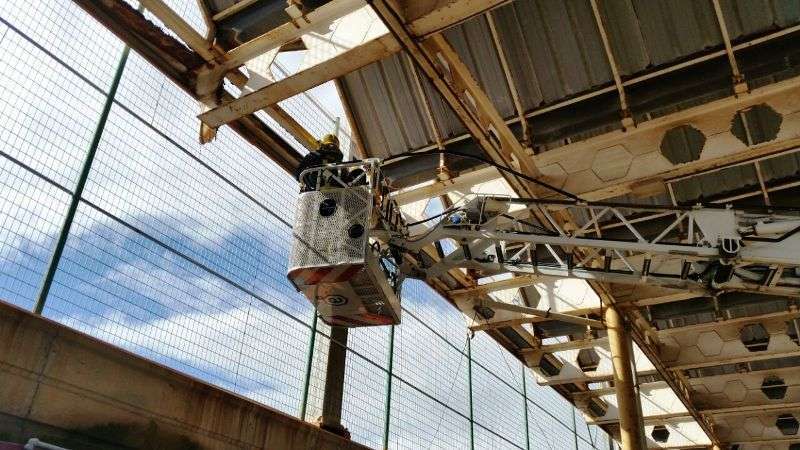 Ya el pasado viernes, profesionales del Consorcio de Emergencia tuvieron intervenir en el mismo recinto ante el riesgo que representaba una plancha desprendida. En esta ocasión, tal y como avanzó TELDEACTUALIDAD, se trataba de una canaleta de aguas pluviales de hierro galvanizado que tenía peligro por acción del óxido.