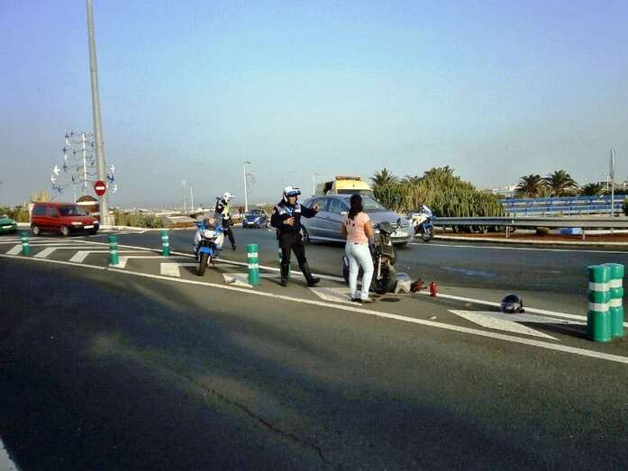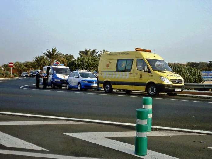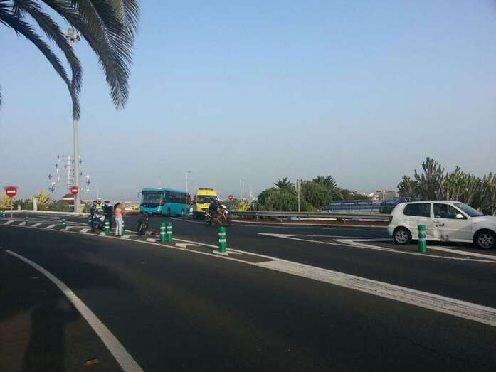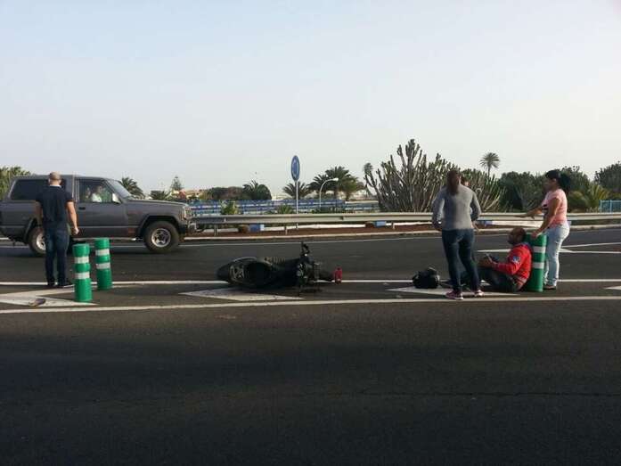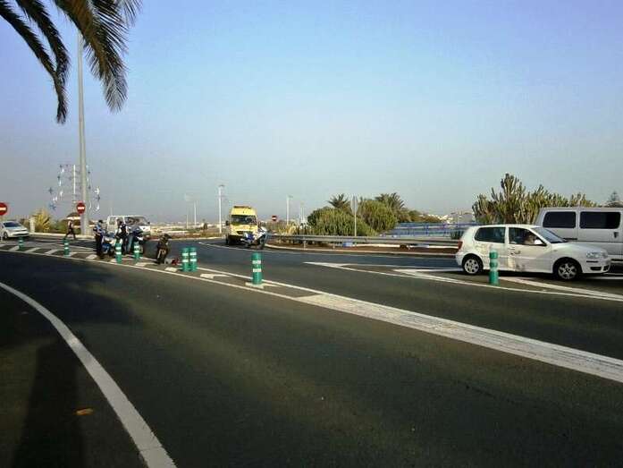 Telde.- Un varón de mediana edad ha resultado herido esta tarde en un accidente de tráfico acaecido, hace escasos minutos, en la vía de circunvalación de Telde, en la proximidades de la rotonda de Los Pajaritos. Efectivos sanitarios del Servicio de Urgencias Canario atienden en estos momentos al afectado que circulaba en moto e impactó contra un turismo. También se encuentran en el lugar del incidente varias patrullas de la Policía Local.