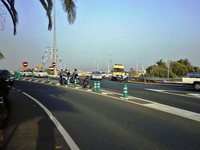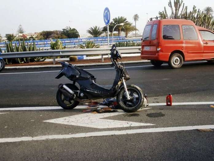 A tenor de los datos recabados in situ por TELDEACTUALIDAD, el accidente se produjo cuando el joven motorista, que circulaba en dirección hacia La Barranquera, salía de un ceda al paso y se incorporaba a una de las rotondas de la circunvalación de Telde, la GC-100, a la altura del auditorio del parque urbano de San Juan. En ese momento colisionó contra un turismo de color blanco y caía al suelo, deslizándose varios metros sobre el asfalto.