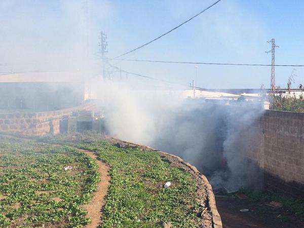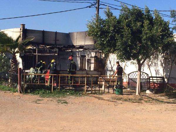 Telde.- Bomberos del Consorcio de Emergencia de Gran Canaria, con base en La Garita, y agentes de la Policía Local de Telde intervienen este lunes en el incendio que se ha producido una finca del barrio de La Pardilla. Las llamas finalmente afectaron a un cuarto donde vivía el guardián del recinto. No hay que lamentar daños personales, aunque la víctima perdió todos sus bienes.