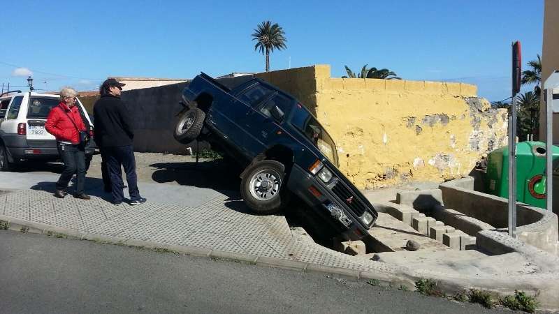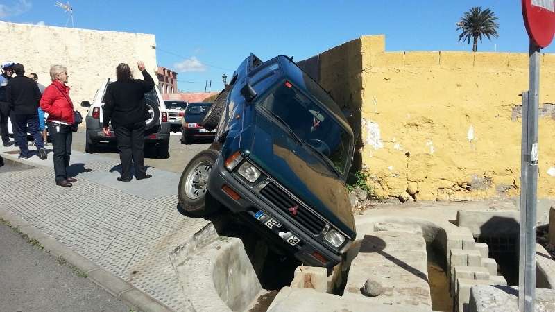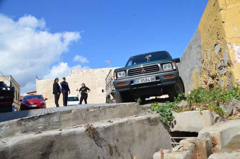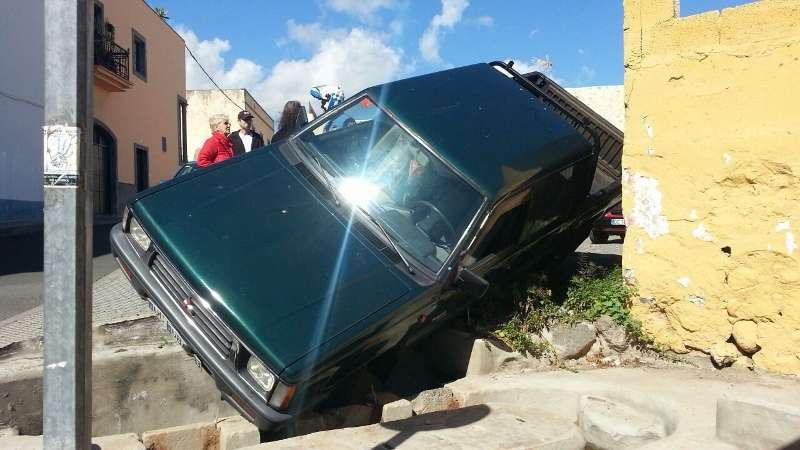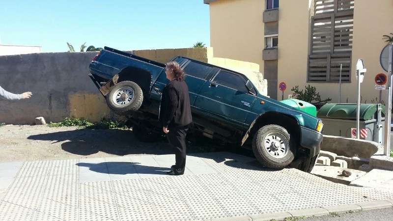 Hasta lugar se desplazó la Unidad de Atestados de la Policía Local de Telde, que estudia cómo sacar la camioneta del lugar donde está atascada. El suceso despertó la curiosidad de los transeúntes, pero pese a lo llamativo de la escena, la mujer no ha sufrido ningún tipo de daños.