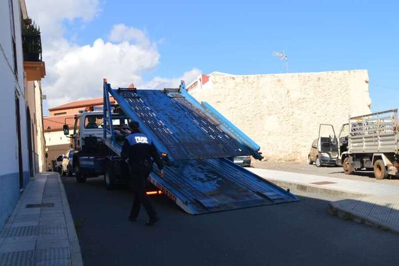 Al filo de las 13.10 horas, el vehículo fue recuperado del lugar donde había caído su parte delantera gracias al concurso de una grúa y de otros vehículo, intervención que se llevó a cabo en presencia de un agente de la Policía Local.