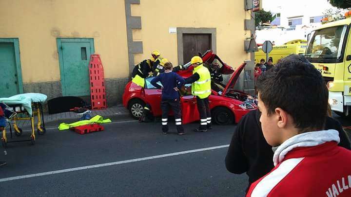 Telde.- Cuatro personas han resultado heridas, tres de ellas con pronóstico menos grave, en la tarde de este martes en un accidente de tráfico registrado entre dos vehículos en la GC-100 a su paso por el casco de Jinámar, en las inmediaciones de la plaza y de la iglesia del pueblo. Ha sido necesaria la intervención de los bomberos para excarcelar a uno de los afectados. La carretera ha permanecido cerrada al tráfico durante algo más de una hora.
