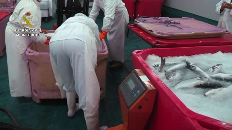 La Guardia Civil desplegó, el pasado día 23 de febrero, un dispositivo de control y seguimiento en las inmediaciones del muelle de Taliarte, en el municipio de Telde, observando que tras atracar el barco de la empresa y descargar las lubinas en las cubetas, una persona, con su vehículo tipo furgón, esperaba en las proximidades a que finalizara la operación de descarga, procediéndose por parte un trabajador de la empresa y con la ayuda de una carretilla elevadora, a introducir en la parte trasera del vehículo una de las cubetas citadas.