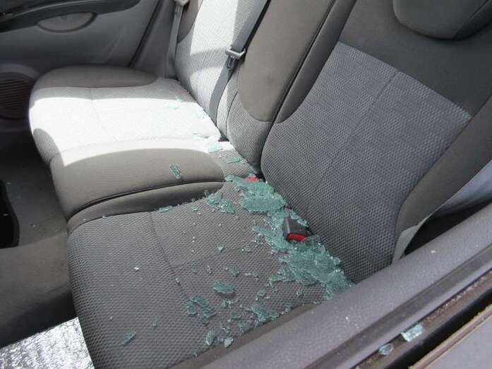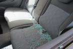Estado en el que ha quedado uno de los cristales del coche robado (Foto TA) Estado en el que ha quedado uno de los cristales del coche robado (Foto TA)