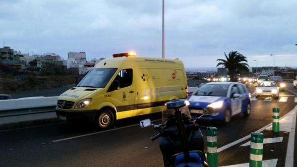 La víctima del atropello fue atendido in situ por el personal sanitario de una ambulancia de soporte vital básico del Servicio de Urgencias Canario que lo trasladó al Hospital San Roque.