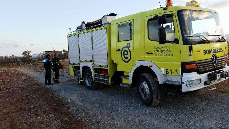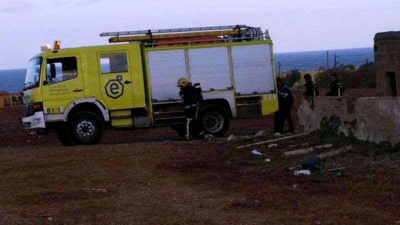 Telde.- Una unidad de bomberos del puesto de La Garita empleó 500 litros de agua en sofocar un incendio que se declaró a primera hora de esta noche en las ruinas de unos habitáculos de la antigua explotación agrícola en desuso situada entre el barrio de Marpequeña y el vial costero. TA avanza imágenes del suceso.