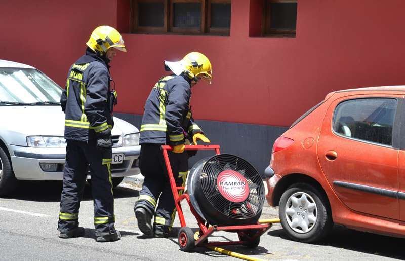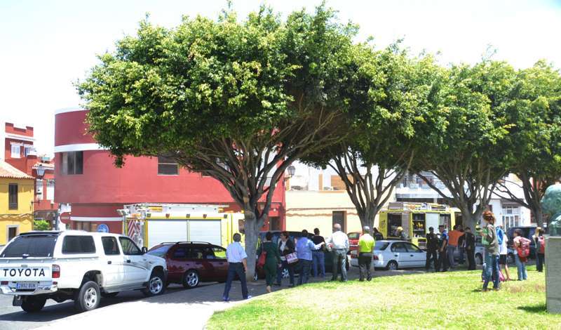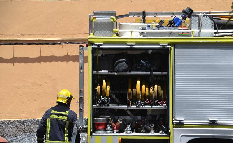 Dos camiones de bomberos del Consorcio de Emergencias de Gran Canaria pertenecientes al parque de La Garita, así como un vehículo de mando y coordinación, atendieron este martes a un fuego desatado en torno a las 13.30 horas en un inmueble de San Juan, con fachada a las calles Ciega y León y Castillo.