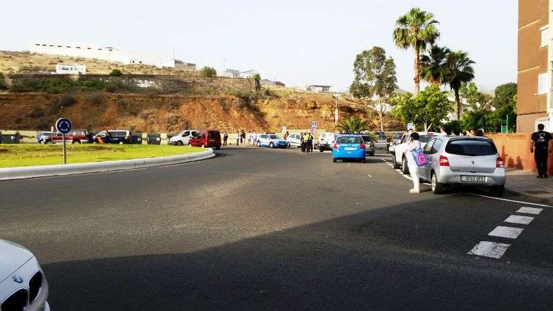 El lugar donde yacía el cuerpo del fallecido, junto a la rotonda de Eucaliptos I fue acordonado por la Policía Nacional y en las inmediaciones del punto donde ocurrió el trágico suceso se desplegó un numeroso dispositivo policial, además de ambulancias de Servicio de Urgencias Canario.
