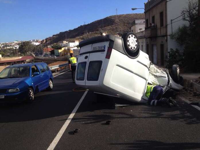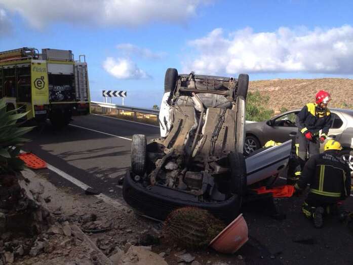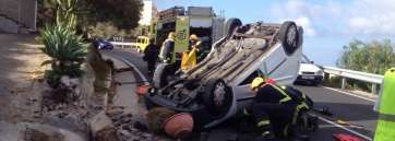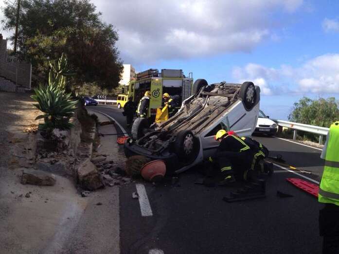 Según ha informado la Sala Operativa del 1-1-2 Canarias, a las 18.39 horas se recibió una llamada alertando del vuelco de un vehículo en la GC-100, pasada la entrada del barrio de La Majadilla.