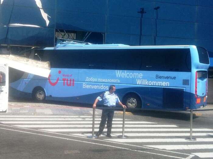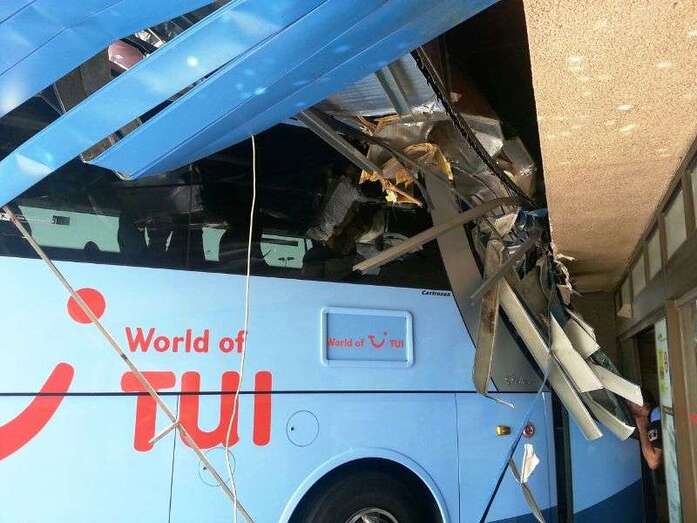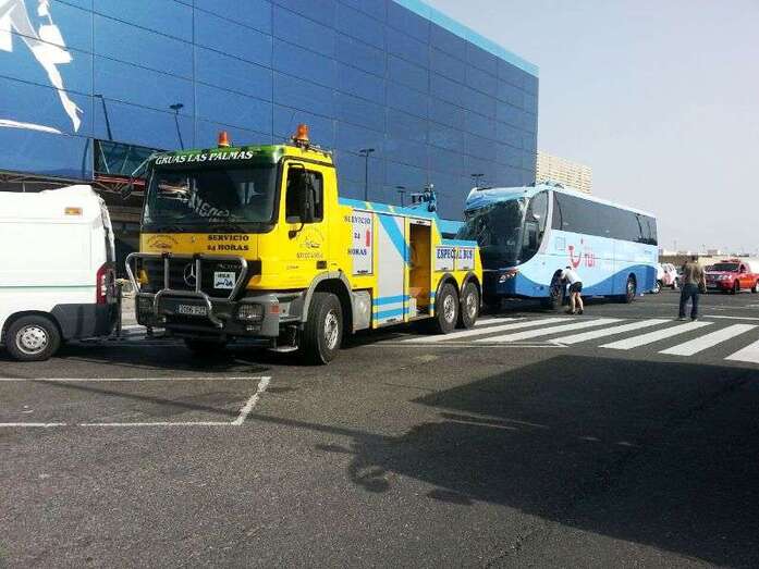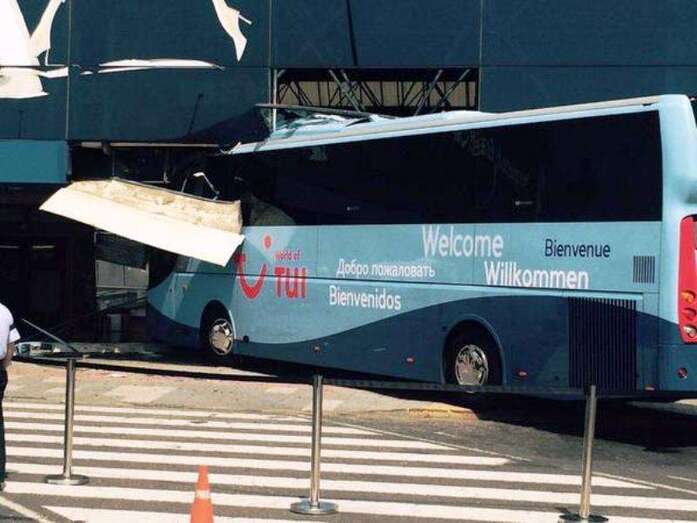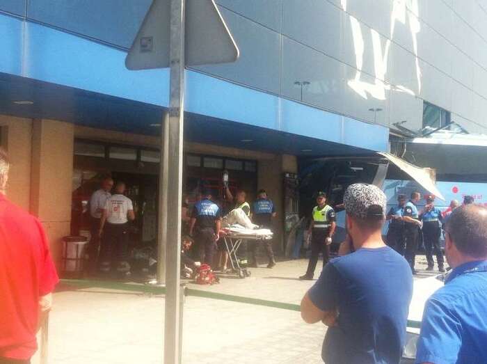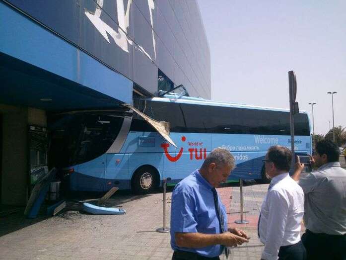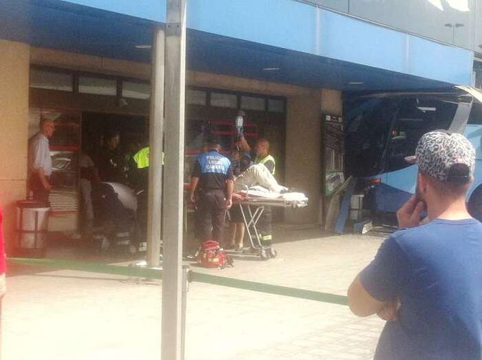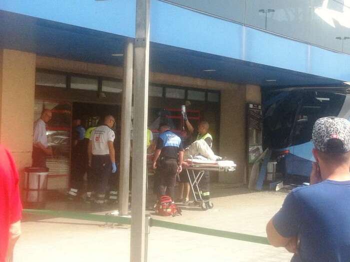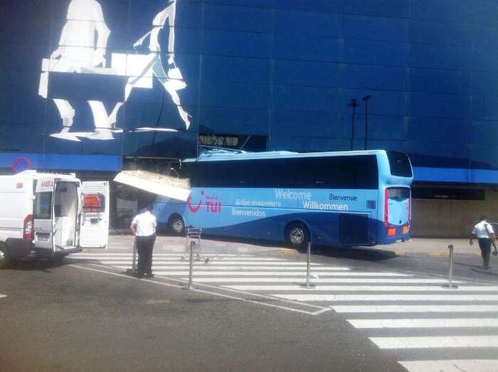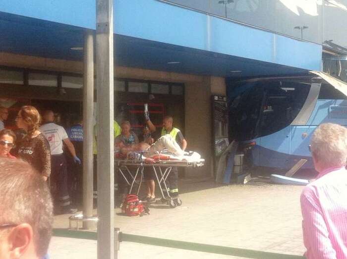 El autocar de color azul por un despiste de su conductor embistió contra la puerta de entrada al edificio Sur del aeropuerto y arrolló a un turista extranjero (alemán) de 81 años, que sufrió heridas leves (corte profundo) en un brazo de las que fue atendido por el personal sanitario de una ambulancia medicalizada del Servicio de Urgencias Canario, que envió también al accidente una unidad móvil de soporte vital básico. Fue evacuado al Hospital Universitario Insular de Gran Canaria, ya que, según los testimonios recogidos en el lugar del suceso, aunque su estado no reviste peligro alguno sí que tendrá que ser intervenido para curarle las lesiones. Otros heridos fueron asistidos por el servicio médico del aeropuerto.