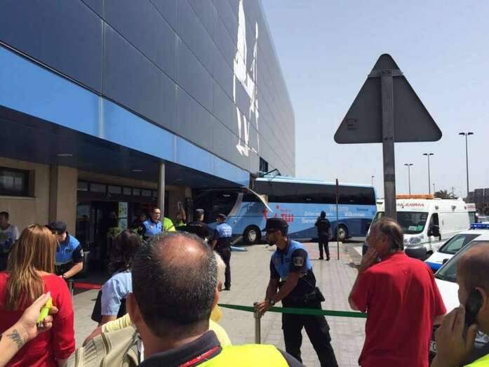Telde.- Una guagua de la compañía de transportes Ultramar Express se ha empotrado contra la terminal de salidas comunitarias del Aeropuerto de Gran Canaria. El suceso ocurrió hace unos pocos minutos.
