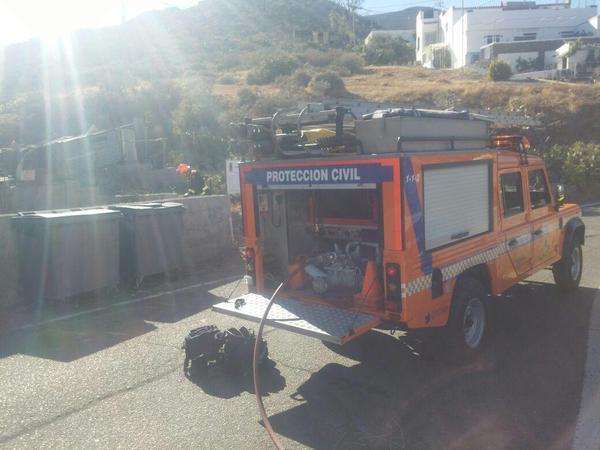 Efectivos de Protección Civil de Telde, sofocando las llamas en Hoya Manrique (Foto TA) Efectivos de Protección Civil de Telde, sofocando las llamas en Hoya Manrique (Foto TA)