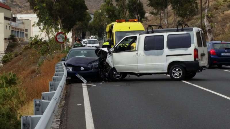 Según los primeros indicios, al parecer, fue el bloqueo de la dirección de la furgoneta la causa del suceso, ya que, tras esta incidencia, el vehículo invadió la calzada contraria y colisionó contra un turismo que circulaba en dirección Telde-Jinámar.