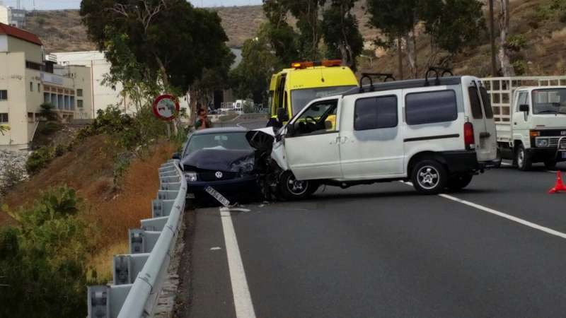 La colisión de dos vehículos en la carretera de Jinámar deja dos heridos leves con latigazo cervical