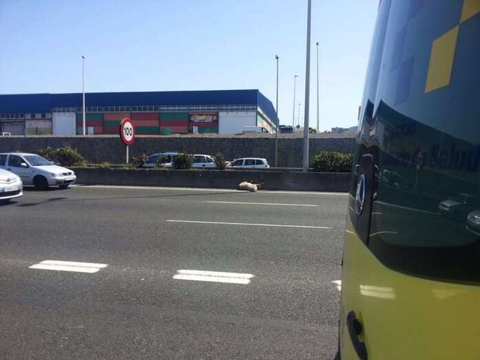 Imagen del animal sobre la calzada de la autopista GC-1 (Foto TA) Imagen del animal sobre la calzada de la autopista GC-1 (Foto TA)