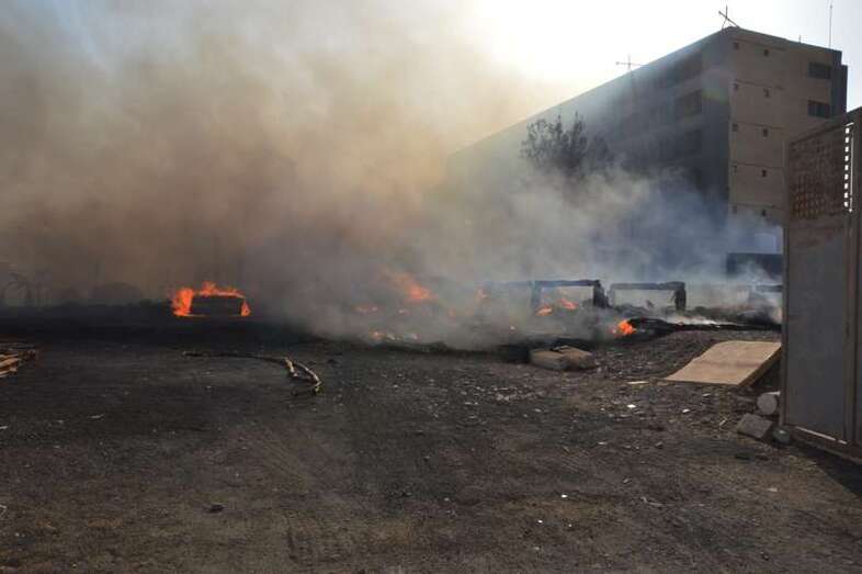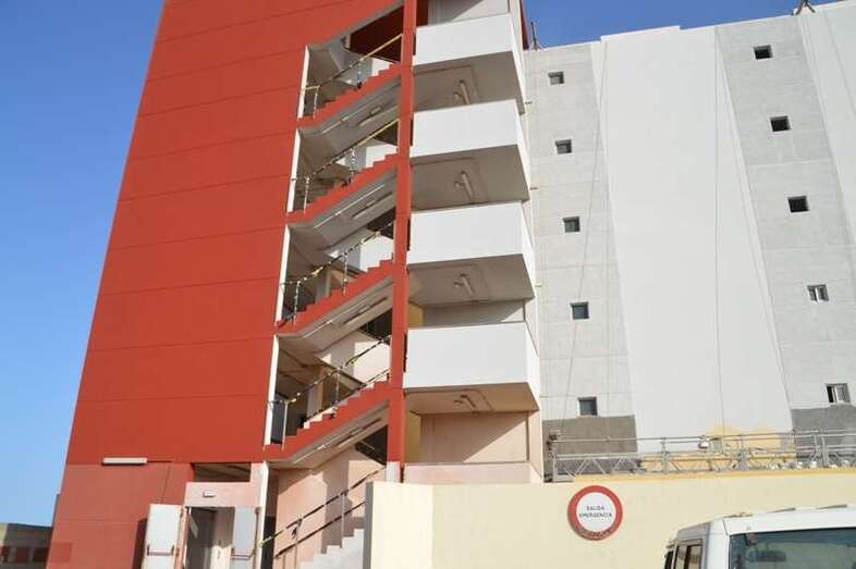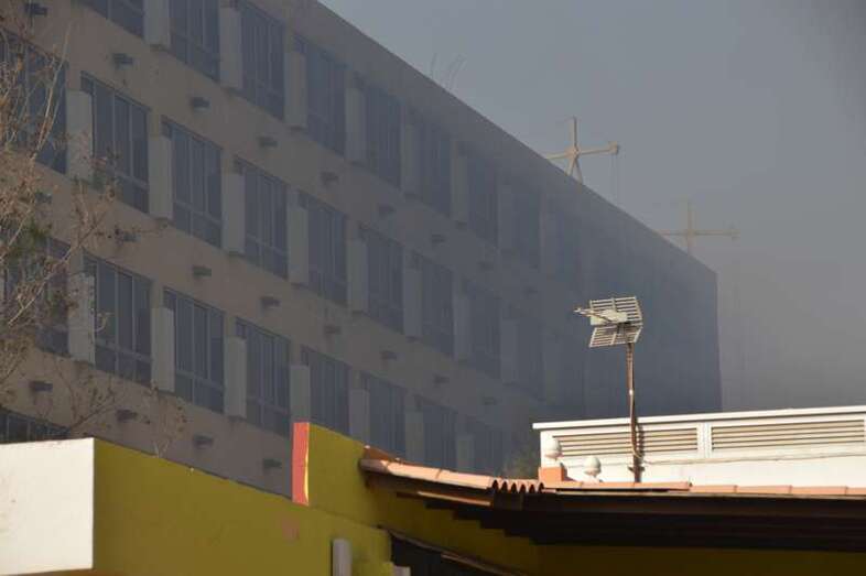 En un primer momento, todo hacía pensar que el fuego se había originado en el edifico residencial, aunque finalmente se concretó que su foco se encontraba en un solar aledaño, de algo más de 200 metros cuadrados de extensión y localizado al este del inmueble, en donde se construyen los módulos prefabricados que se emplean en las obras de ampliación de este centro propiedad del grupo ICOT.