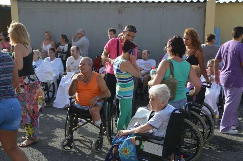 Unos 120 ancianos fueron evacuados por el personal del centro y los efectivos de emergencia, la mayoría en sillas de ruedas, hasta la parte trasera del inmueble, así como numerosas sábanas, mantas y colchones.