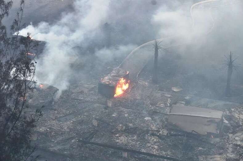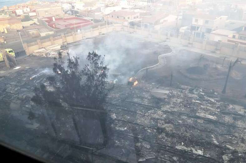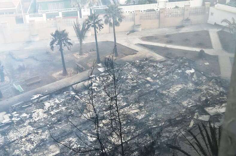 El fuego arrasó los módulos prefabricados que estaban en el jardín del inmueble (Foto TA) El fuego arrasó los módulos prefabricados que estaban en el jardín del inmueble (Foto TA)