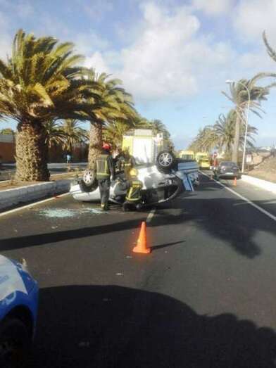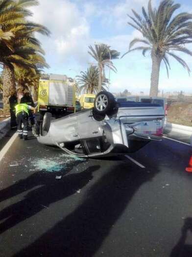 Telde.- Un conductor ha volcado aparatosamente esta tarde con su turismo en la Avenida del Cabildo, en sentido Telde-La Garita y a la altura de El Hornillo, al verse involucrado en una colisión con otros dos vehículos. La Sala Operativa del 1-1-2 ha confirmado que ninguno de los afectados ha precisado asistencia sanitaria. El incidente está originando importantes retenciones de tráfico en la vía.