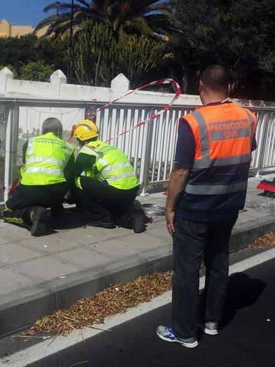 Para evitar el peligro, efectivos de bomberos del Consorcio de Emergencias y miembros de Protección Civil Telde procedieron a restituir de manera provisional el vallado afectado, que ahora deberá ser reparado por el servicio de mantenimiento de carreteras del Cabildo del Cabildo de Gran Canaria.