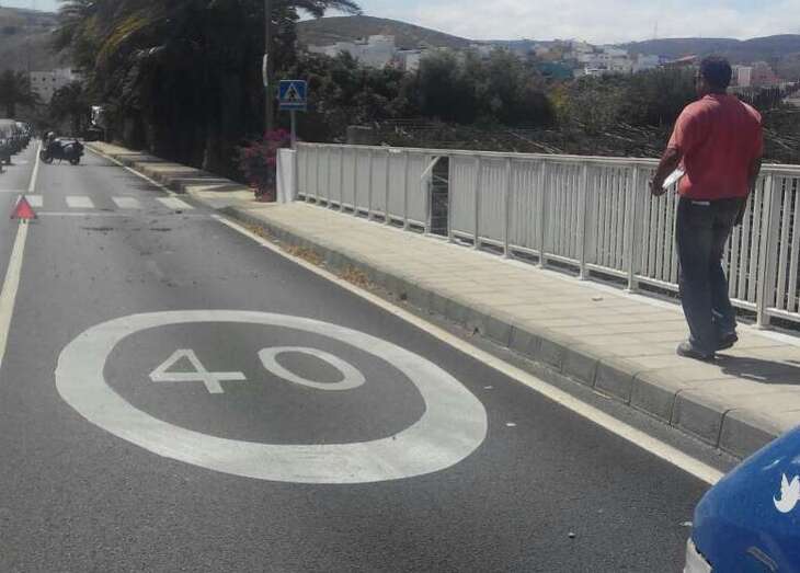 A raíz del impacto de la carga, uno de los segmentos de la pasarela, ubicada entre la rotonda de El Roque y la glorieta que comunica el casco de Telde con Valsequillo, se desprendió precipitándose hasta el cauce del barranco.