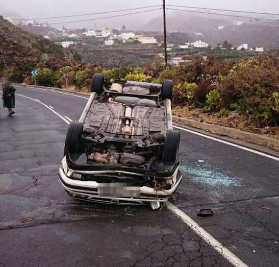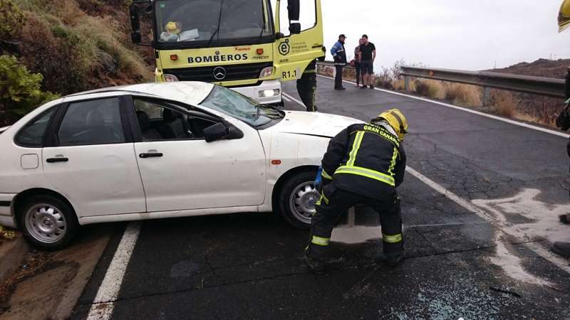 Telde.- La lluvia está provocando este viernes verdaderos estragos en la circulación en el municipio, en donde a lo largo de la mañana se han registrado varios accidentes. Un vehículo volcaba aparatosamente este mediodía, sobre las 12.15 horas, cuando circulaba por la carretera de Los Picos (GG-130) a la altura de Llanos de Madrid.
