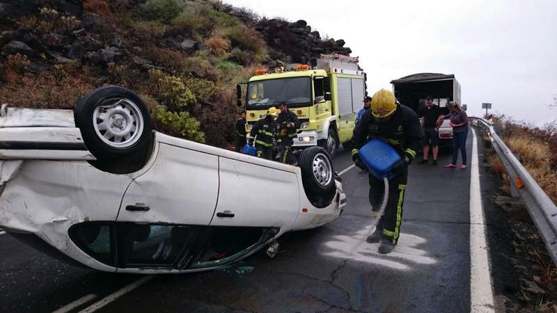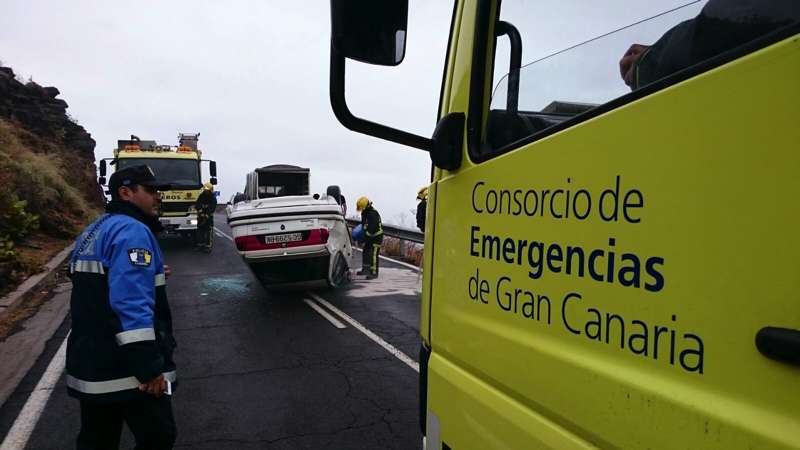 El turismo, con un único ocupante en su interior que salió ileso del accidente, quedó totalmente boca abajo bloqueando la circulación en uno de los dos carriles de la vía, por lo que fue necesaria la intervención de dos dotaciones de bomberos del Consorcio de Emergencias de Gran Canaria y efectivos de la Policía Local de Telde y de la Agrupación de Tráfico de la Guardia Civil.