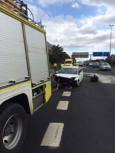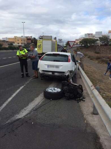 Según el Centro Coordinador de Emergencias y Seguridad (CECOES) 1-1-2 del Gobierno de Canarias, el accidente tuvo lugar poco después de las 14.00 horas y los heridos fueron evacuados en ambulancias del Servicio de Urgencias Canario. Ambos con lesiones leves, cervicalgia. De la violencia del impacto, el turismo perdió dos ruedas y el motor, que se quedó en medio de la autopista.