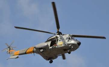 Un helicóptero Súper Puma HD21 en la zona del accidente con base en Dakhla en labores de apoyo y rescate y en alerta permanente para realizar los rescates que se necesiten.
