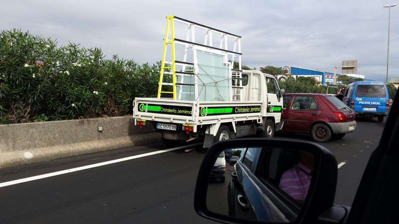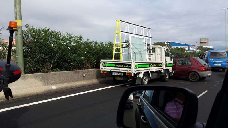 Según las primeras informaciones captadas por TA, una pequeña furgoneta que transportaba ventanas en su carga trasera impactó con un turismo, que quedó inutilizado en el carril izquierdo de la autovía en dirección a la capital grancanaria. El suceso dio pie a las primeras retenciones de la mañana en esta arteria. En el mismo se vieron afectados un hombre de 45 años y una mujer de 44.