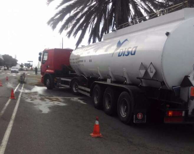 Telde.- Una avería en un camión cisterna de transporte de combustible obligó esta tarde a cerrar al tráfico el acceso principal del polígono industrial de El Goro, el más importante de los situados en el municipio de Telde. Los servicios de emergencia también tuvieron que actuar en la autopista GC-1 debido al derrame de gasoil en la vía.