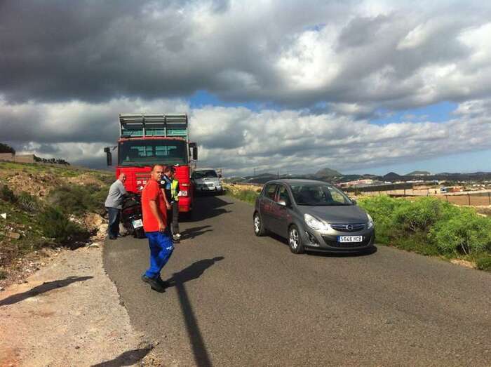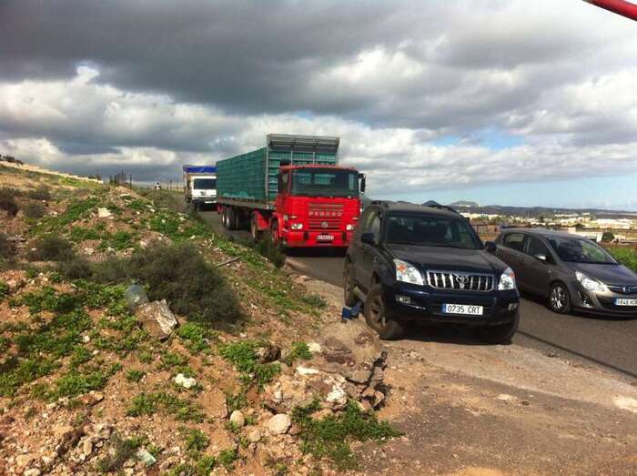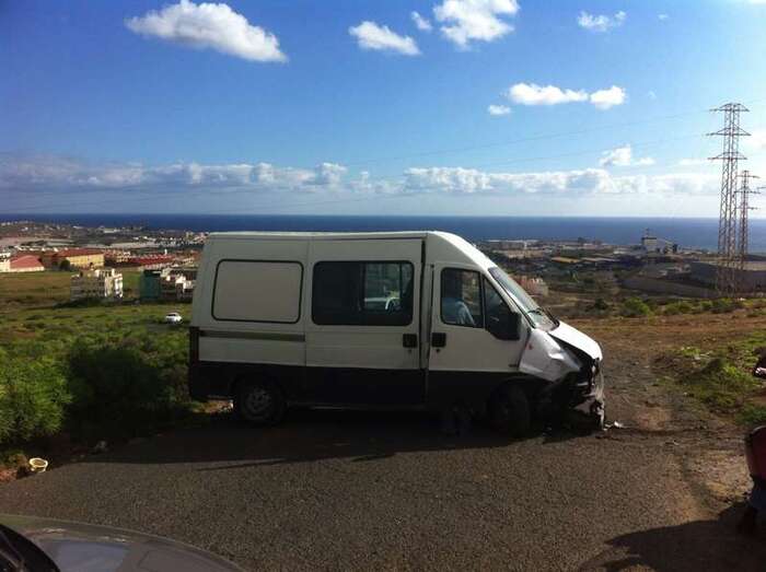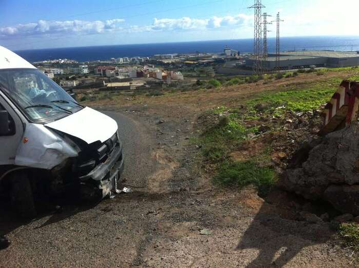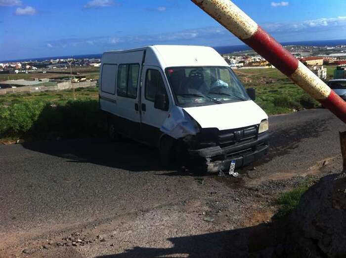Telde.- Un furgón sufrió esta mañana un accidente al quedarse sin frenos cuando circulaba por la carretera que comunica Montaña Las Huesas y el núcleo de Cruz de Jerez. El vehículo perdió los frenos e impactó contra la barrera de una finca privada, quedando bloqueado en medio de esta vía cuya circulación permanece interrumpida en ambos sentidos.