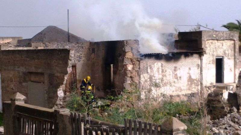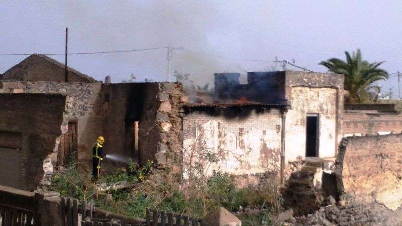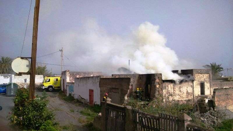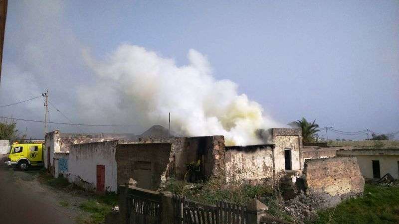Telde.- Los bomberos del parque zonal de La Garita han acudido hace unos minutos a sofocar un incendio en unas casas abandonadas de una finca colindante con las instalaciones de la Cooperativa de Empresarios Taxistas de Telde, en el sector del Callejón del Castillo.
