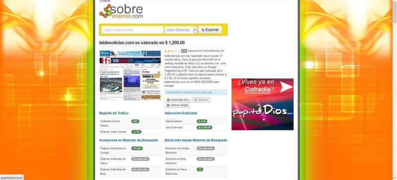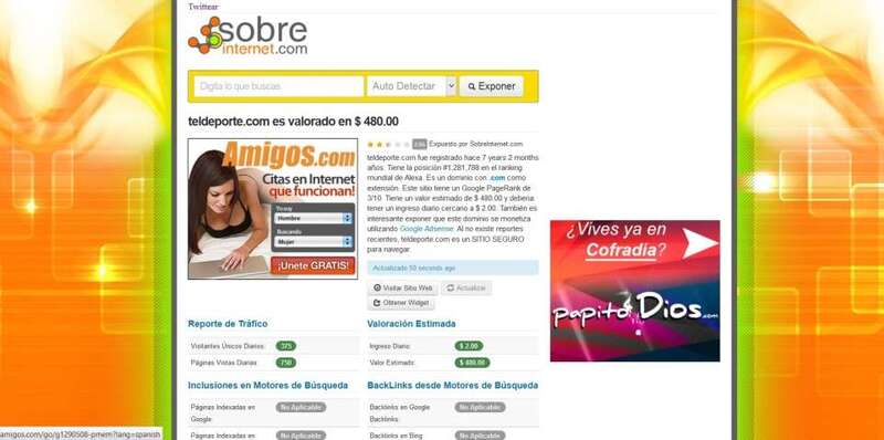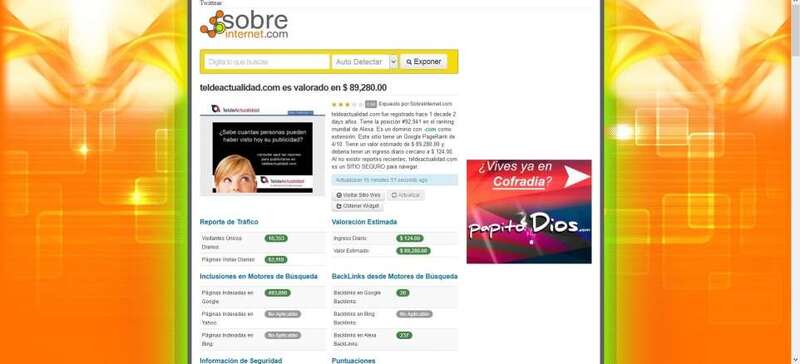 A tenor de los datos de Alexa, TELDEACTUALIDAD se encuentra ahora mismo en la posición 92.615 entre los millones de páginas web que pululan por la red de redes que es Internet. Entre las españolas ocupa el puesto 1.930, aunque los datos varían casi a diario.