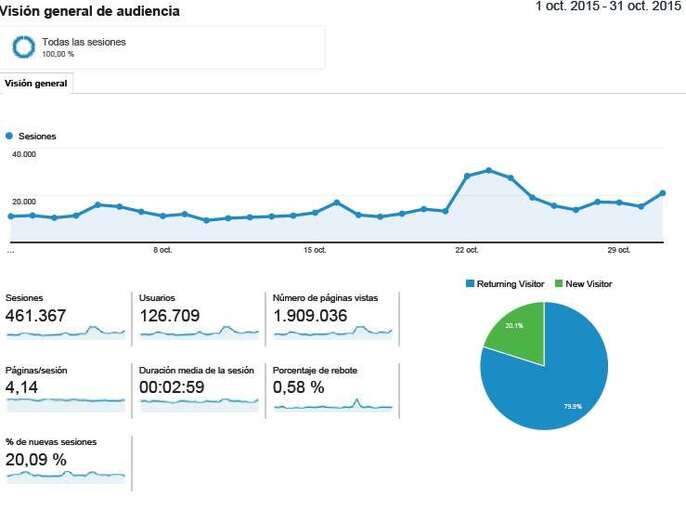 Estadística de Google Anaytics para TELDEACTUALIDAD (mes de octubre)
